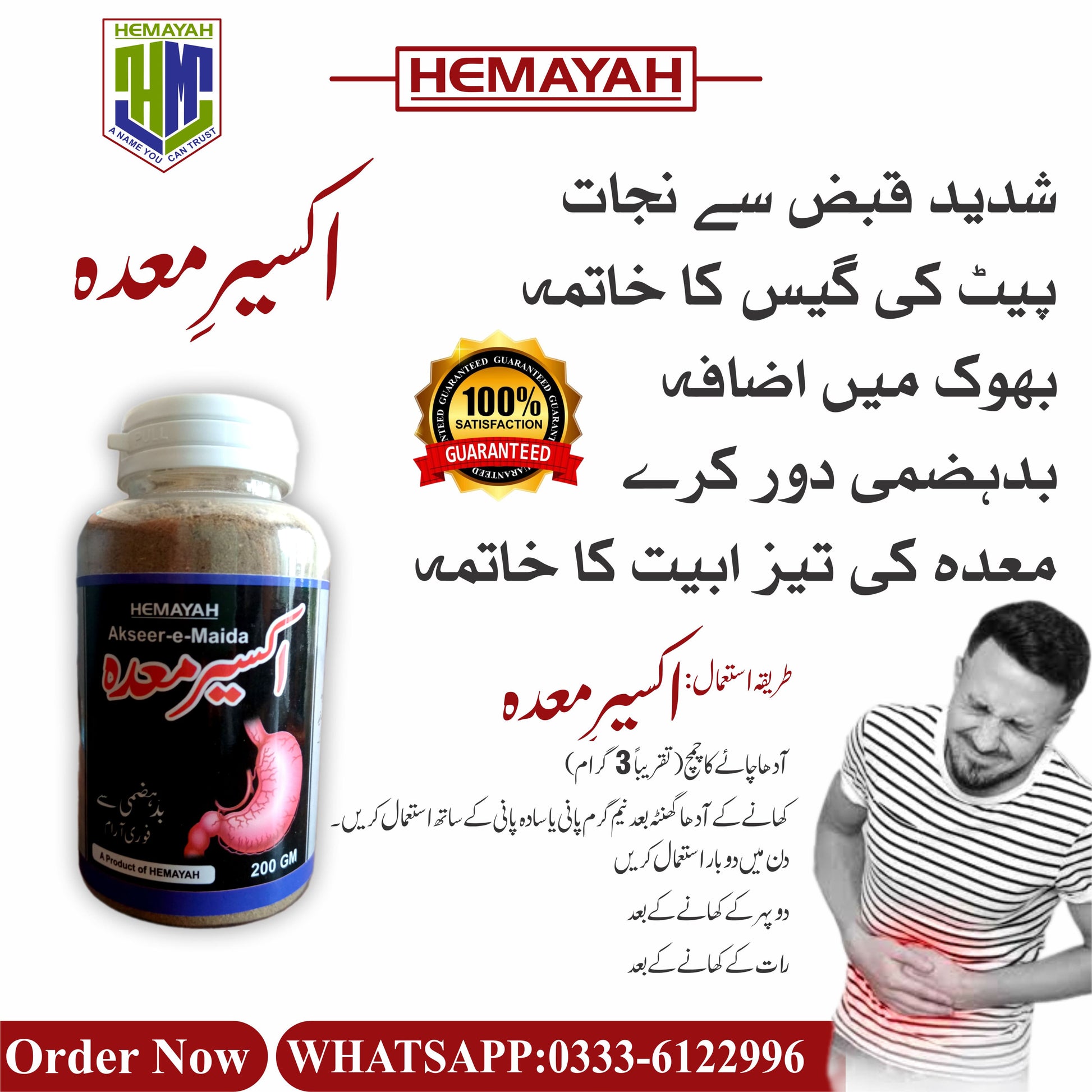 اکسیر معدہ ایک مؤثر یونانی دوا ہے جو معدے کی تیزابیت، بدہضمی، گیس اور اپھارے کے لیے بہترین ہے۔ یہ قدرتی جڑی بوٹیوں سے تیار کردہ نسخہ معدے کو سکون دیتا ہے اور نظامِ ہضم کو بہتر بناتا ہے۔